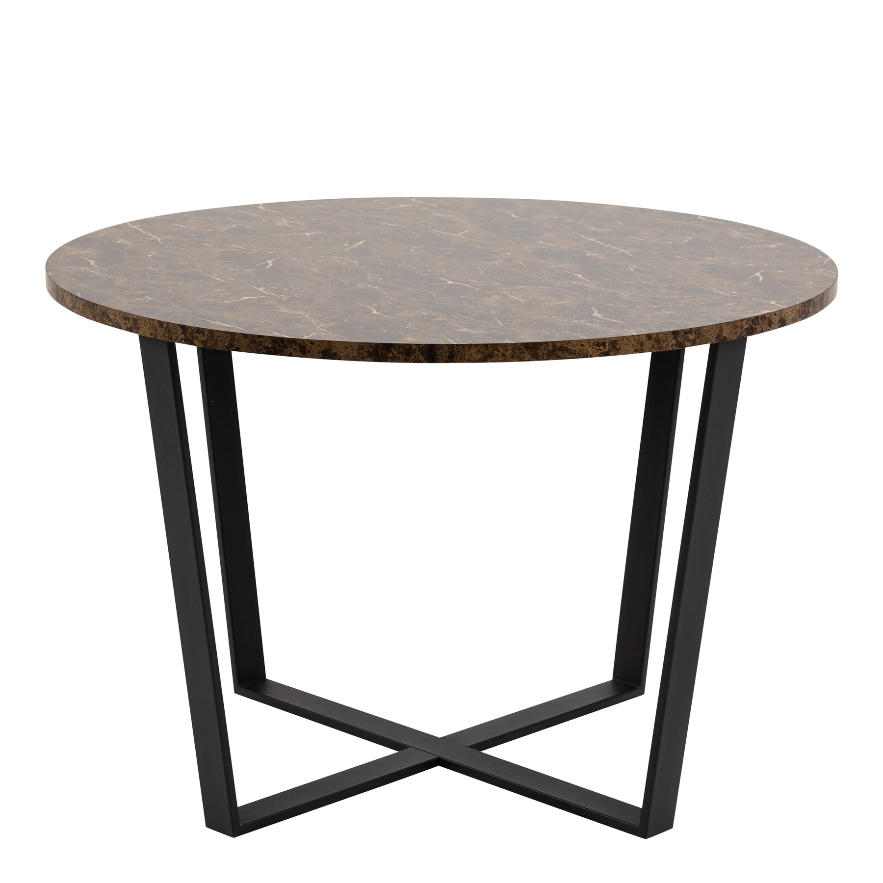 Amble Round Dining Table with Brown Marble Melamine Top & Black Legs