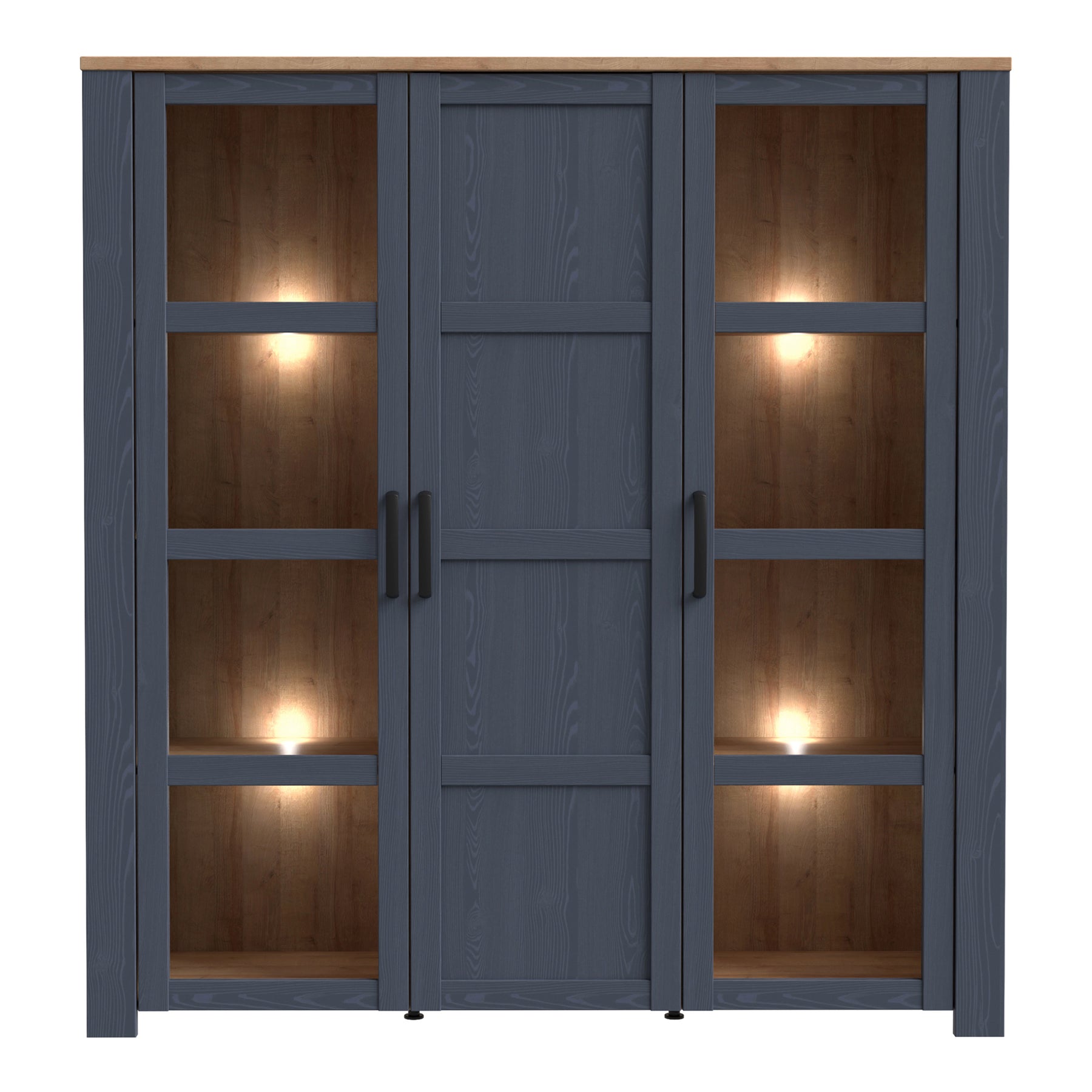 Bohol Large Display Cabinet inc. 4x LED Lights in Riviera Oak/Navy