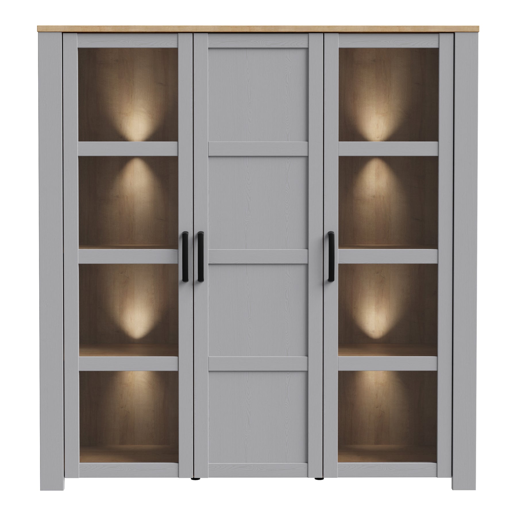 Bohol Large Display Cabinet inc. 4x LED Lights in Riviera Oak/Grey Oak